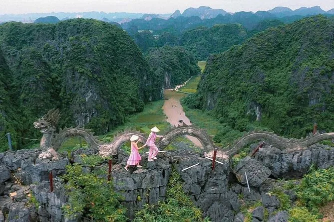 Cambia el tráfico de la ciudad por arrozales entre niebla en esta excursión de un día a Ninh Binh desde Hanoi: remar por las cuevas de Tam Coc, recorrer en bici los caminos del pueblo (o simplemente mirar), probar cabrito local en el almuerzo y subir a Mua Cave para una vista inolvidable.