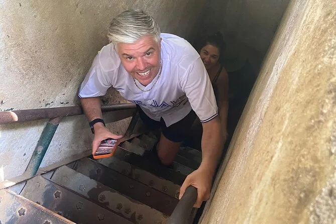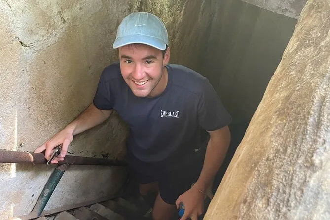 Cuando llegamos a los túneles, todo estaba más tranquilo de lo que imaginaba. Vimos un corto documental — imágenes antiguas y granuladas que me emocionaron sin saber por qué — y luego caminamos por senderos sombreados donde la luz del sol se colaba entre las hojas de bambú. Anh nos mostró algunas trampas antiguas (la verdad, bastante aterradoras) y nos explicó cómo la gente se escondía días enteros bajo tierra. Nos ofreció probar a gatear por uno de los túneles. Al principio dudé — son muy estrechos — pero al final lo hice. Allí abajo hace calor y humedad; casi se siente el sabor de la tierra en la boca.