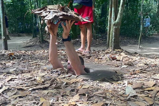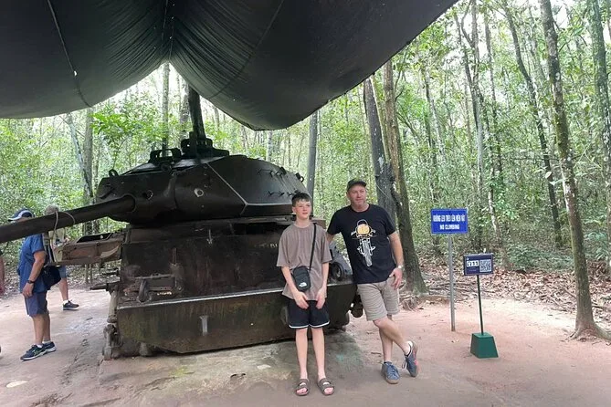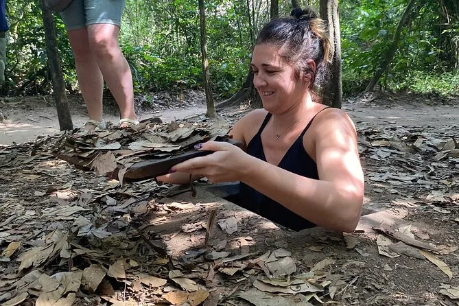 Viaja desde Ho Chi Minh a los Túneles de Cu Chi con un guía local que comparte historias personales por caminos tranquilos de pueblo. Recorre túneles reales, descubre trampas de guerra y prueba el té tradicional de yuca antes de regresar — un día que no olvidarás.