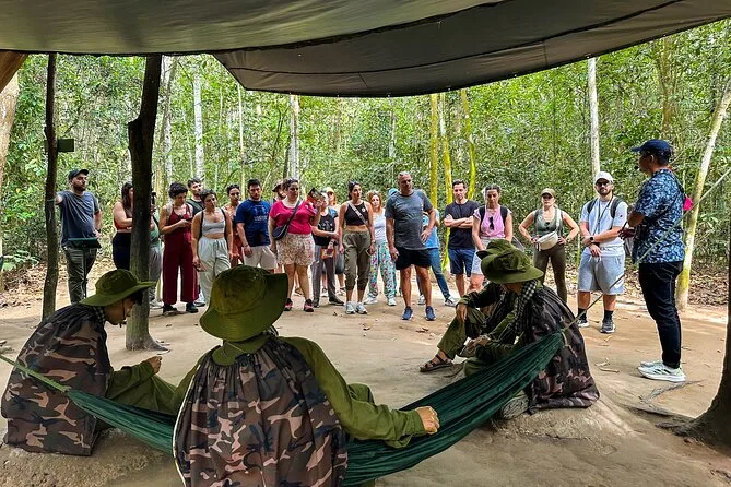 Tu día incluye transporte ida y vuelta desde tu hotel en el centro del Distrito 1 (Ho Chi Minh), guía local en inglés durante toda la visita a los túneles de Cu Chi, entradas, agua embotellada para cada persona y una degustación de yuca con té tradicional antes de regresar cómodo.