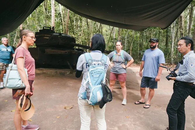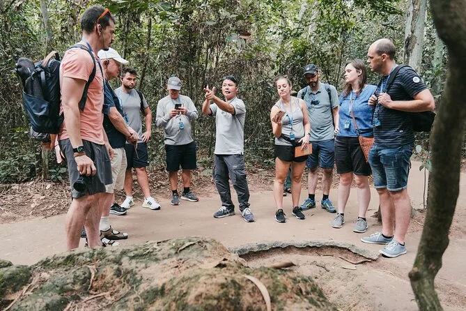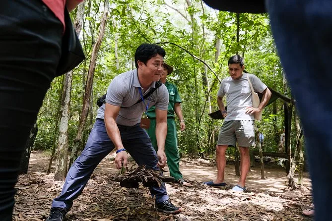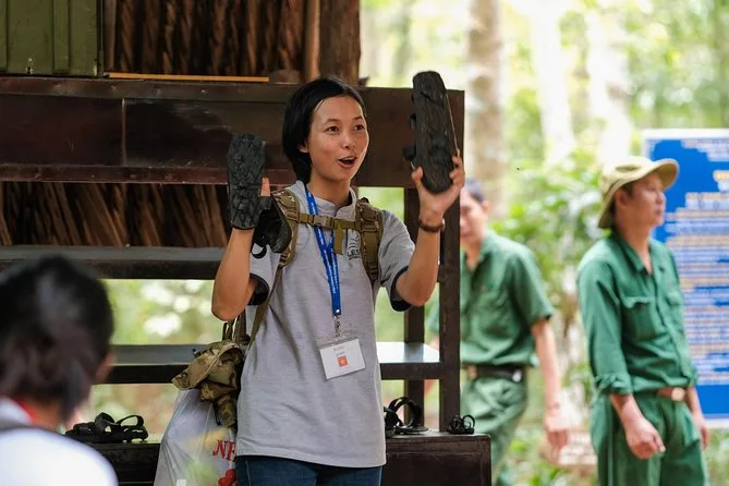 Tu día incluye recogida y regreso al hotel en los distritos centrales de Ho Chi Minh, snacks para el desayuno, almuerzo vietnamita a la orilla del río con degustación de yuca, bebidas y frutas locales ilimitadas durante el viaje, WiFi en el transporte entre Saigón y los Túneles de Cu Chi, todas las entradas pagadas y la guía de un experto local con licencia internacional que comparte historias familiares en el camino.