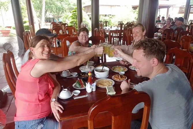 Tu día incluye recogida en hotel en Ho Chi Minh, todas las entradas para los Túneles de Cu Chi y el Delta del Mekong, transporte cómodo en minivan con aire acondicionado, todos los paseos en barco (incluido el sampán), agua potable durante el día y un almuerzo tradicional con opciones vegetarianas si lo solicitas, antes de regresar a tu hotel por la tarde.