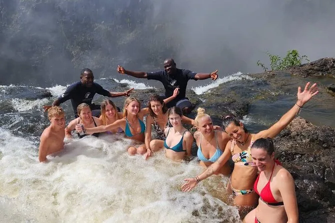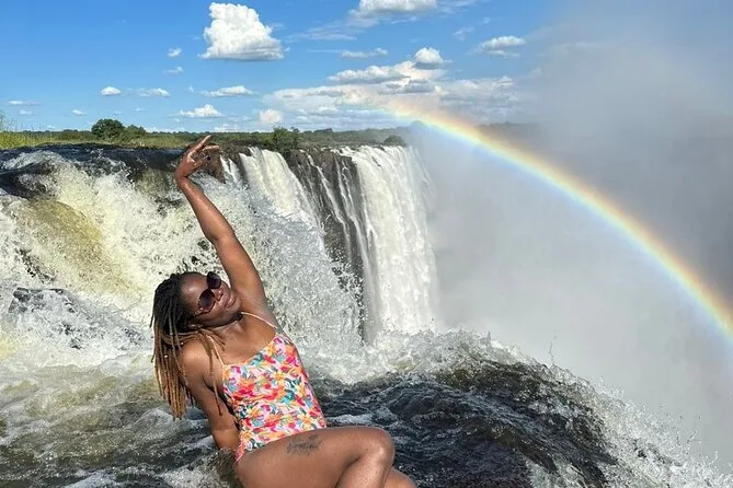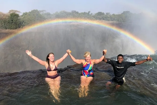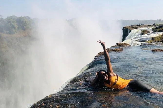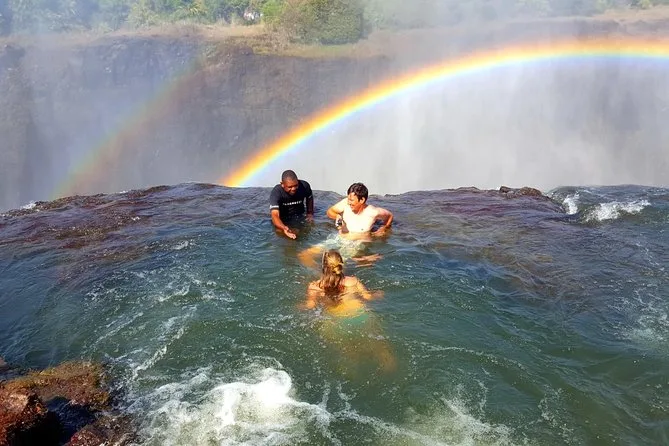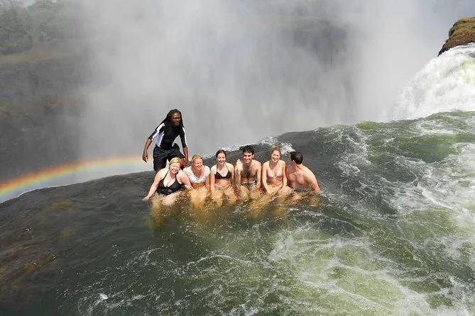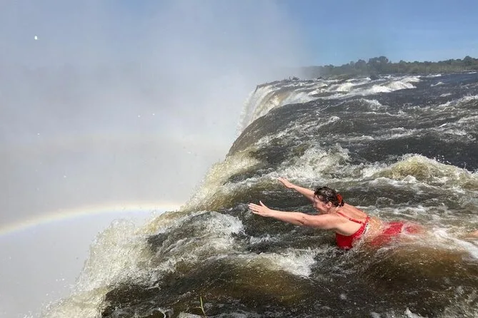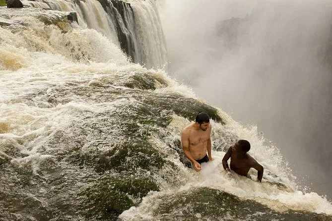 Nadarás justo al borde de las Cataratas Victoria en Devil’s Pool, en Livingstone Island, acompañado por guías locales que conocen cada roca y corriente. Disfruta un desayuno completo tras el baño y contempla vistas que pocos tienen la suerte de ver — una experiencia que recordarás cada vez que escuches el sonido del agua.