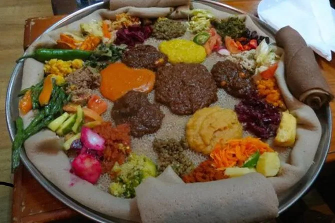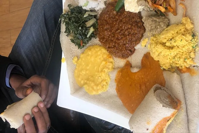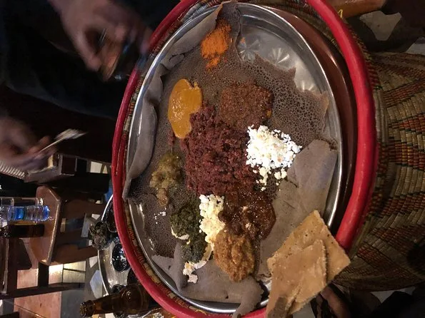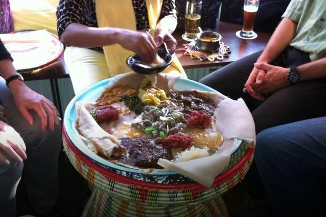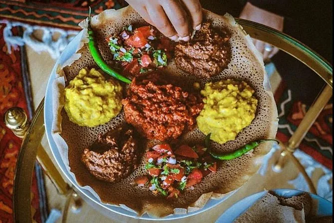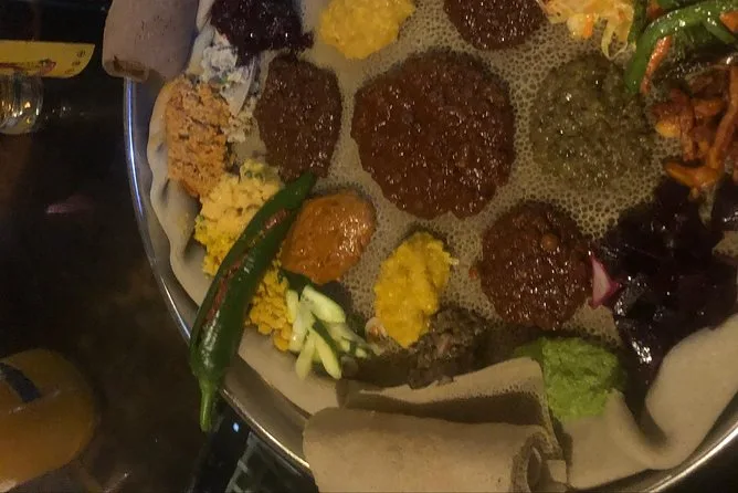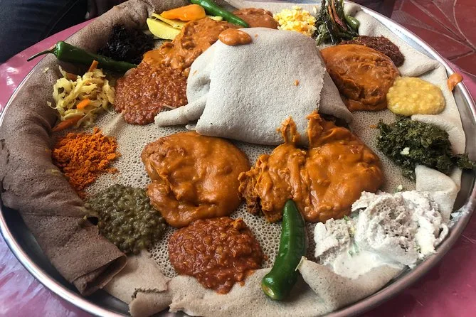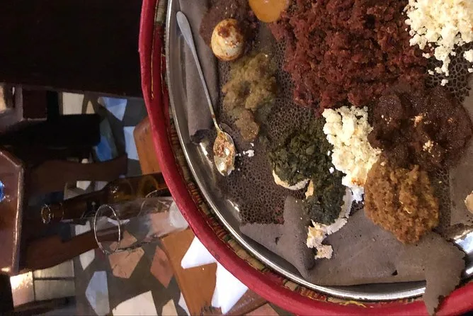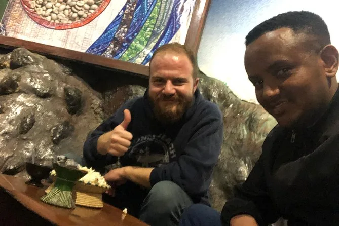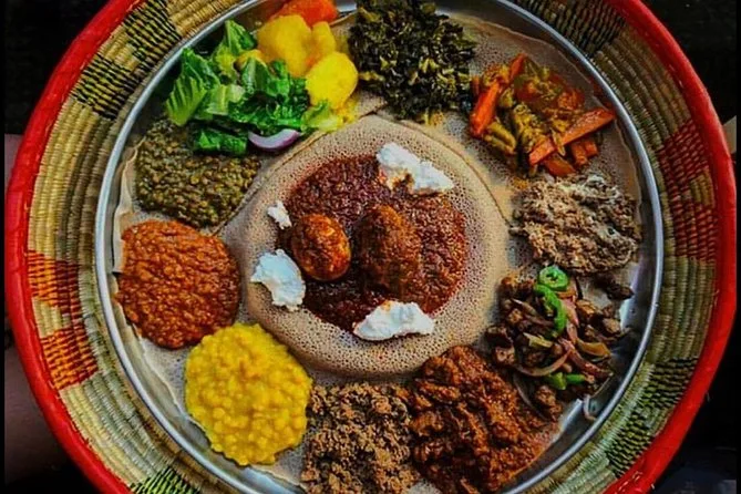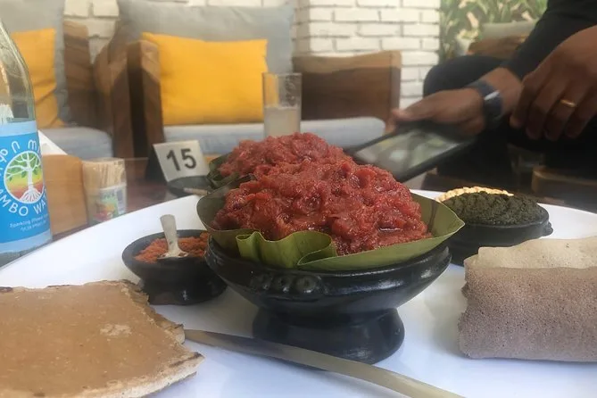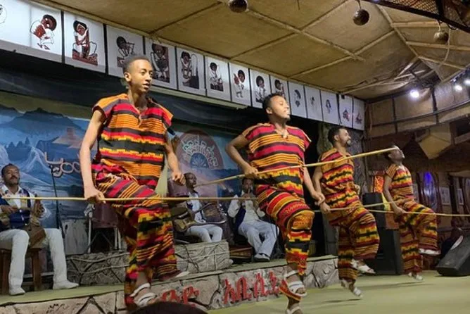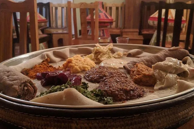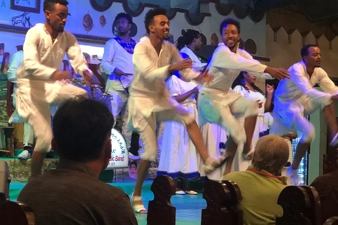 A buffet dinner with traditional Ethiopian cuisine is included, along with bottled water and Tomocca coffee.