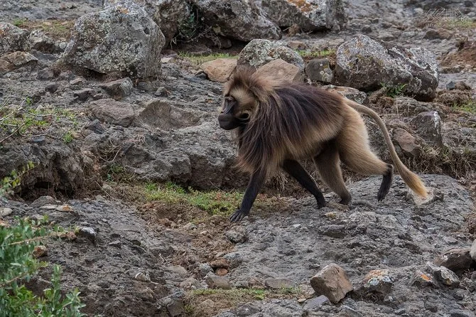 We walked out toward the edge where the land just drops away into the Jemma Valley. Birds everywhere — honestly, I’m not even a bird person but Samuel pointed out a White-cheeked Turaco and suddenly I cared. The air felt different up there, cooler and almost sharp. Then came the real surprise: a whole troop of Gelada baboons lounging on the rocks below us, picking through grass with those weirdly human hands. One looked up and stared right at me for what felt like ages. I still think about that moment sometimes.