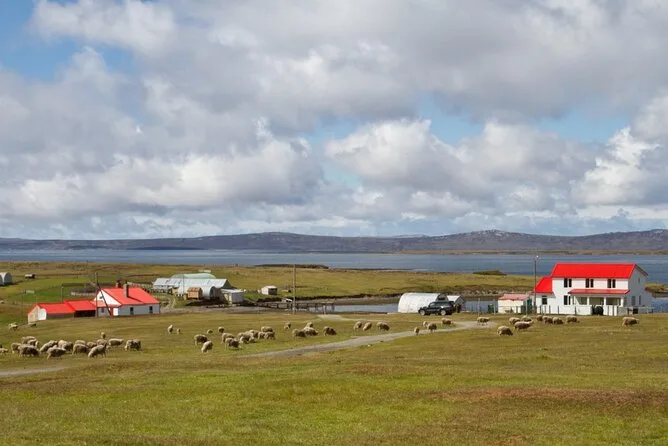 The day trip lasts around 7–8 hours including travel from Stanley port to Volunteer Point and back.