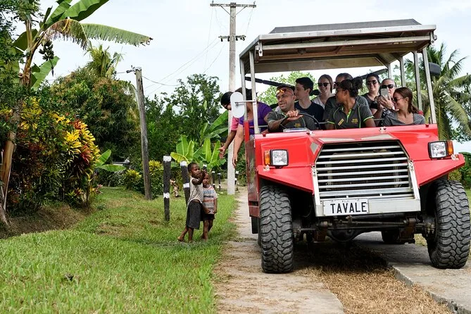 Your day includes pickup in Sigatoka aboard custom off-road vehicles with your guide leading stories along the way; bottled water and snacks during travel; entry to Naihehe Cave following a traditional kava ceremony with local priests; all headlamp equipment for exploring inside; plus a riverside Fijian BBQ lunch before returning via scenic village roads—with plenty of smiles (and high-fives) along the way.
