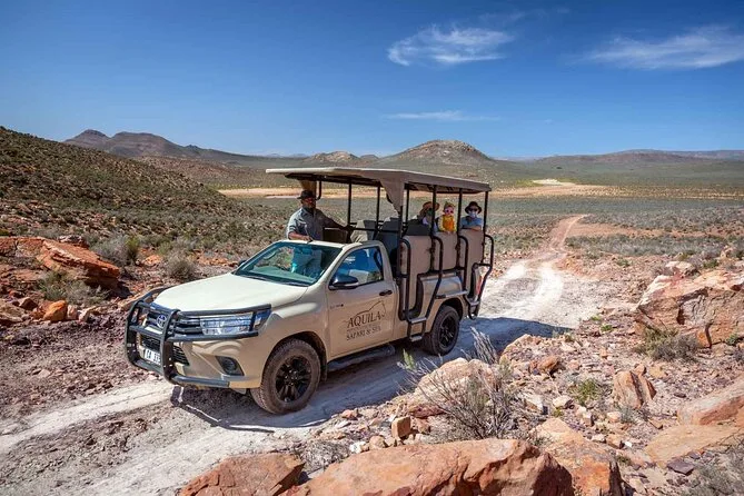 Votre journée comprend la prise en charge et le retour à l’hôtel à Cape Town avec un guide professionnel au volant d’un véhicule haut de gamme ; arrêts pour dégustation de vin ou café dans la vallée de Breede River ; entrée à la réserve Aquila (payante séparément) avec une coupe de champagne à l’arrivée, un déjeuner buffet et un safari guidé de 2 à 3 heures avant le retour par les cols de montagne en soirée.