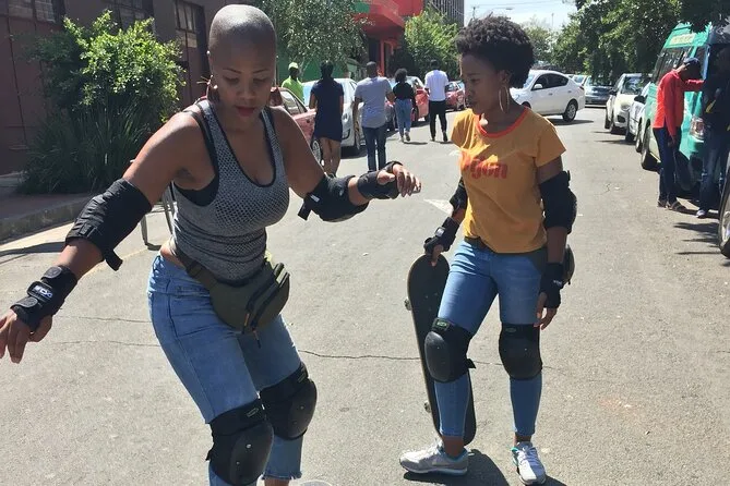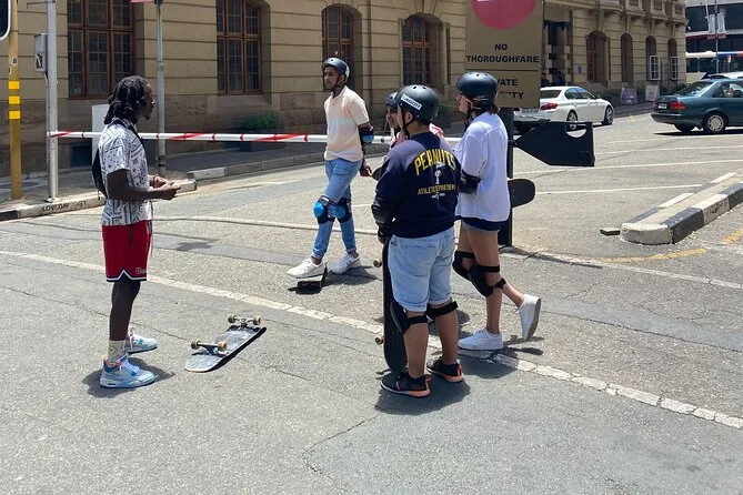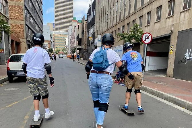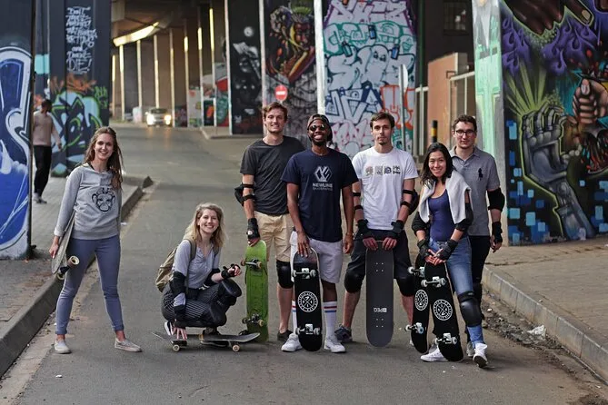 Votre journée comprend un cours de skate adapté aux débutants à Maboneng avec tout le matériel de sécurité (casque, genouillères, coudières, protège-poignets), une balade guidée à pied et en skate dans les quartiers clés de Johannesburg comme Marshalltown et Newtown, des histoires sur l’histoire et la culture racontées par votre guide local, ainsi que le transport retour au point de départ à la fin du tour.