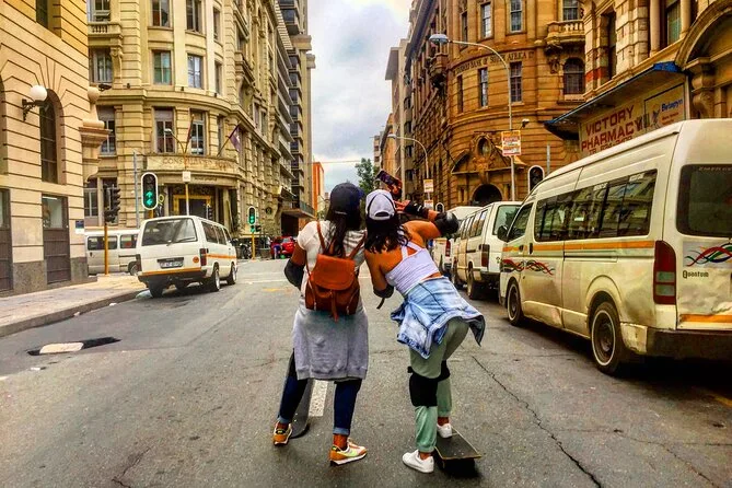 Voici votre chance de découvrir Johannesburg à hauteur d’homme : apprenez les bases du skate à Maboneng, roulez devant des sites historiques comme Gandhi Square et Fox Street avec un guide local, et imprégnez-vous de l’énergie authentique de Joburg entre murs colorés et bruits de la ville. Matériel complet et transport retour inclus — sans oublier ces petits instants qui restent gravés bien après que vos jambes aient cessé de trembler.
