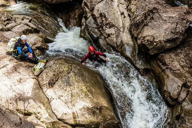 Votre journée comprend tout l’équipement de sécurité spécial pour le canyoning à Starzlachklamm — combinaison, casque, harnais — ainsi qu’un guide local certifié (max 1:7), une initiation pratique au rappel au début de l’aventure, un accompagnement tout au long du parcours débutant dans les gorges d’Allgäu, une organisation sur place sans pression pour avancer à votre rythme, et des photos prises pendant l’expérience à garder en souvenir.