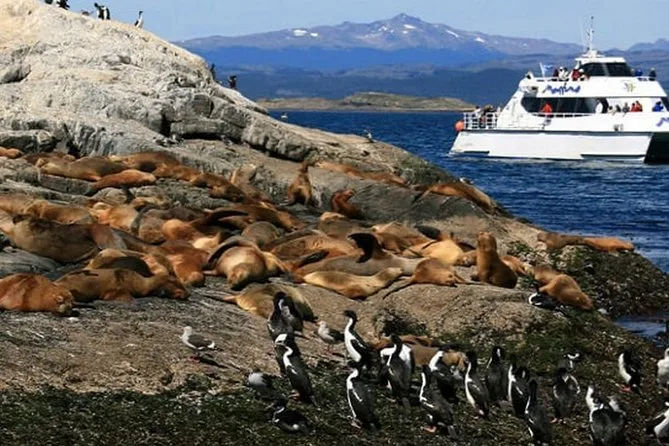 Votre journée comprend une navigation en catamaran sur le canal Beagle avec un guide local professionnel à bord ; escale à l’île Alicia pour observer les otaries ; passage par l’île des Oiseaux pour découvrir la faune aviaire ; vue sur le phare Les Eclaireurs ; et une escale guidée sur l’île Bridges pour explorer la flore, la faune et l’histoire Yamana avant de revenir au port d’Ushuaia.