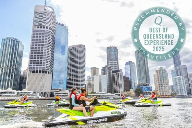 Vous commencez en plein centre de Brisbane, rencontrez votre guide local pour un briefing sécurité rapide, puis partez en jet ski sur la rivière jusqu’à Moreton Bay. Attendez-vous à des vues sur la ville, des rencontres avec la faune (peut-être des dauphins !), des rires entre nouveaux amis, et cette sensation unique de vent et d’eau qui vous marque longtemps.