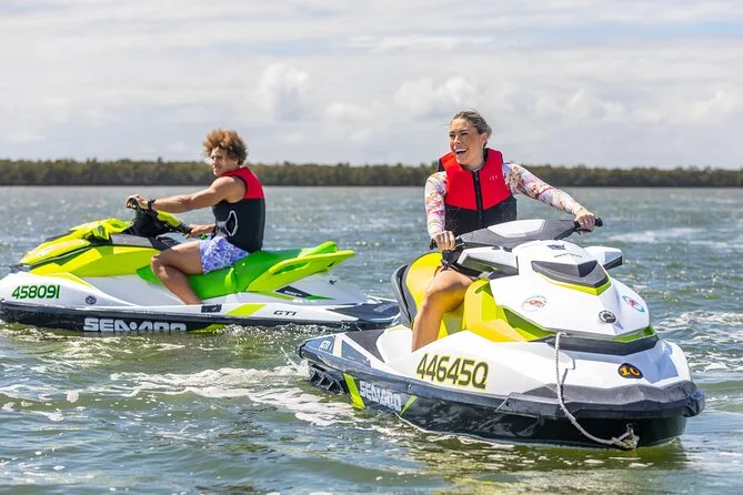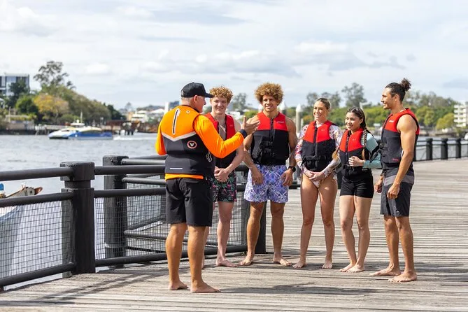 Votre journée comprend de l’eau en bouteille, tous les frais et taxes inclus, l’utilisation de jet skis Seadoo récents avec gilets Jet Pilot fournis, ainsi qu’un accompagnement complet par des guides locaux sympathiques — aucun permis ni expérience nécessaire — pour explorer la Brisbane River et Moreton Bay ensemble.