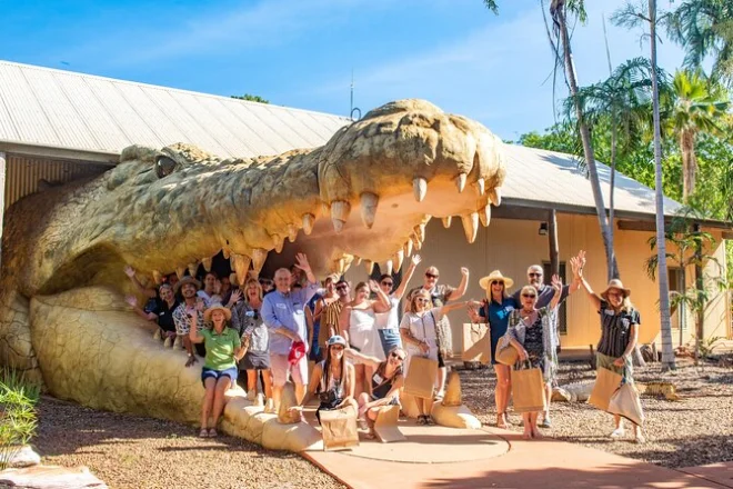 Vous serez pris en charge à Broome et plongerez directement dans le parc Malcolm Douglas à travers ces mâchoires géantes. Assistez au nourrissage des crocodiles, écoutez des histoires authentiques racontées par des guides locaux, découvrez plus de 2 500 crocodiles et alligators, et repartez avec un nouveau respect pour ces créatures millénaires — sans oublier un peu de poussière rouge sur vos chaussures.
