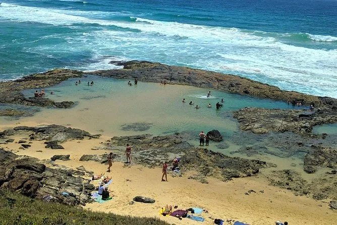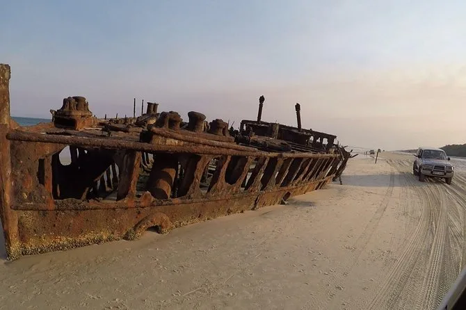 Le deuxième jour a commencé tôt (pas d’excuse pour la gueule de bois, ils étaient sérieux). Les Champagne Pools nous ont réveillés en un instant, les vagues déferlaient sur les rochers en créant une sensation pétillante autour des jambes. Ensuite, direction Eli Creek — on a pris des bouées et flotté au fil de l’eau pendant qu’une petite enceinte diffusait de la musique. Plus tard, on s’est arrêtés à l’épave du Maheno. Rouillée et à moitié enfouie, elle contraste avec les sables colorés et fait réfléchir sur le temps qui passe. Jess nous a raconté comment la tempête l’avait poussée là il y a des années ; j’ai essayé d’imaginer ce chaos, mais surtout, je me suis senti tout petit, dans le bon sens du terme.