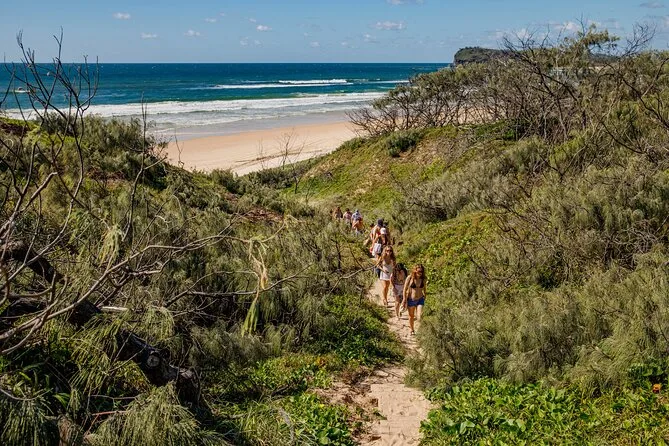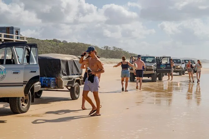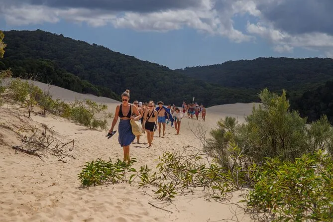 Chaque matin, vous êtes pris en charge à Pippies Beachhouse à Rainbow Beach. Tous les repas sont inclus, du petit-déjeuner aux barbecues préparés ensemble au camp. Sac de couchage et oreiller fournis pour deux nuits sous tente, avec douches chaudes gratuites au camp de base. Vous serez guidés par des locaux qui connaissent chaque piste des sables de K’gari, avant de revenir en ville en fin d’après-midi le troisième jour.