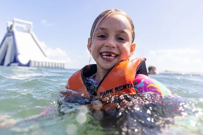 Votre session comprend l’accès au parc aquatique gonflable primé de la Gold Coast ainsi que les gilets de sauvetage pour votre sécurité ; une équipe locale sympathique est toujours présente pour vous aider. Pensez à remplir votre décharge en ligne avant d’arriver et à prendre vos chaussons aquatiques obligatoires à l’accueil avant de vous lancer dans l’eau.