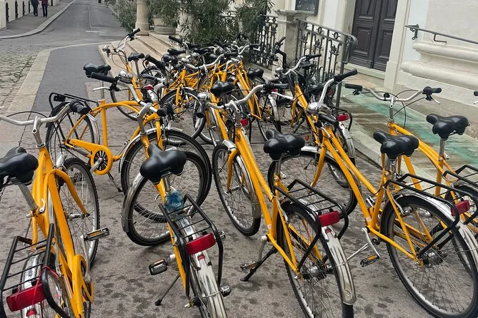 Les vélos sont inclus dans la visite ; des vélos électriques sont proposés pour plus de confort.