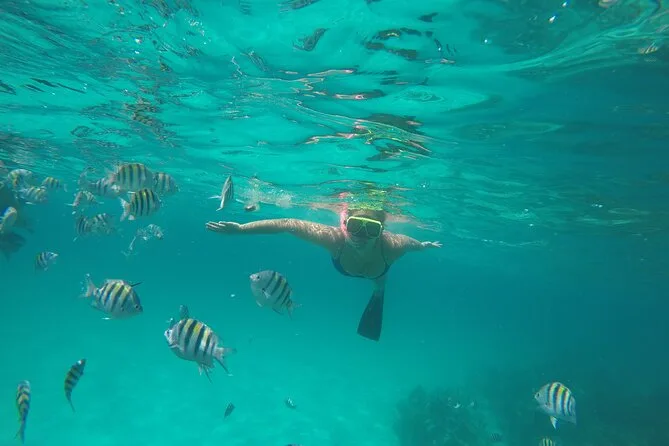Plongez au cœur de la vie bahaméenne : snorkeling sur des récifs colorés près de Nassau, baignade avec les célèbres cochons de Rose Island (oui, vraiment), déjeuner tranquille dans un bar de plage local, et observation de tortues sauvages depuis le bateau. Rires, pieds dans le sable et souvenirs inoubliables garantis, même quand l’odeur de la mer aura disparu de votre peau.