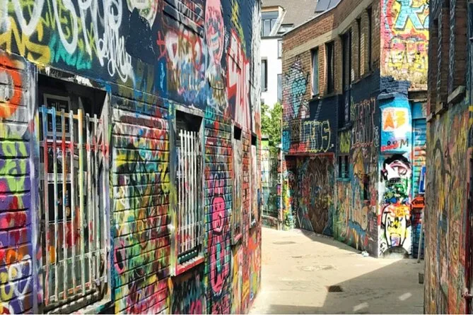 On a ensuite flâné dans la Werregarenstraatje. Ce n’est pas une ruelle comme les autres ; elle est entièrement recouverte de graffitis—certains changent chaque semaine. L’odeur de peinture en spray flotte dans l’air, et un artiste ajoutait une nouvelle œuvre quand on est passés. Giel nous a montré quels artistes sont des légendes locales et quels tags sont juste de passage.