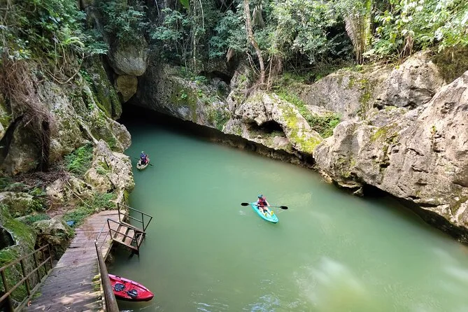 Je n’avais jamais fait un trip comme ce kayak de 7 miles dans les grottes. Luis m’a tendu une lampe frontale en souriant quand j’ai tâtonné avec (“T’inquiète, tu vas vite t’habituer à l’obscurité”). À l’intérieur de la première grotte, tout est devenu silencieux, à part le bruit des pagaies et quelques gouttes d’eau qui résonnaient sur la pierre. L’air sentait la terre ancienne — difficile à décrire, mais on le sent quand on y est. On a glissé à travers cinq grottes différentes ; certaines salles étaient tellement vastes que ma voix me revenait en écho quand je chuchotais. Il y avait quelques petits rapides qui ont fait battre mon cœur un peu plus fort (dans le bon sens), même si Luis assurait qu’ils sont sans danger pour les débutants en saison sèche.