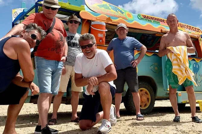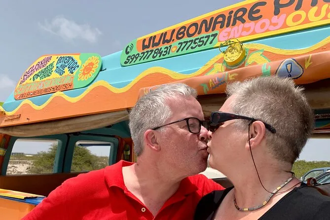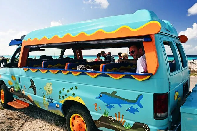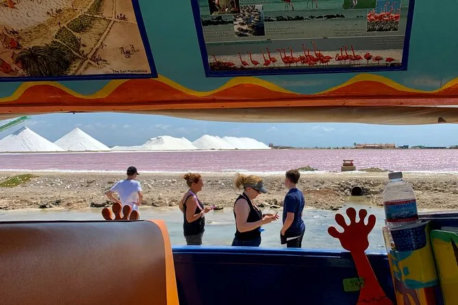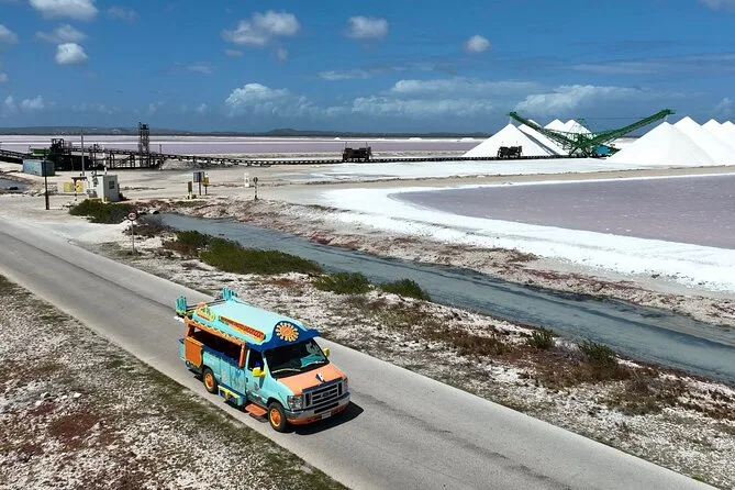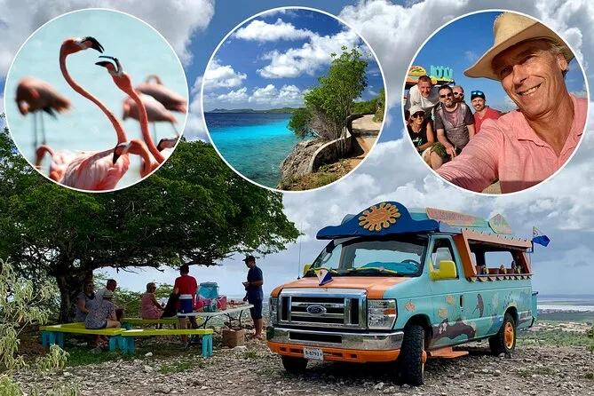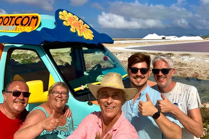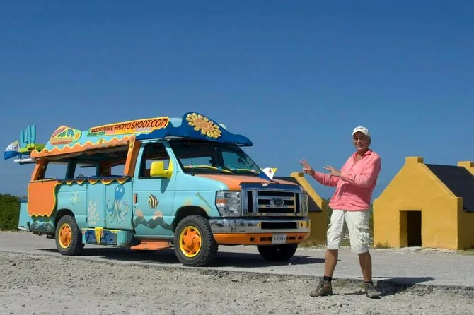 Vous visiterez les salines roses, verrez des flamants roses, ferez une halte au site de plongée Hilma Hooker, explorerez les cabanes d’esclaves, passerez par le phare Willemstoren et Lac Bay.