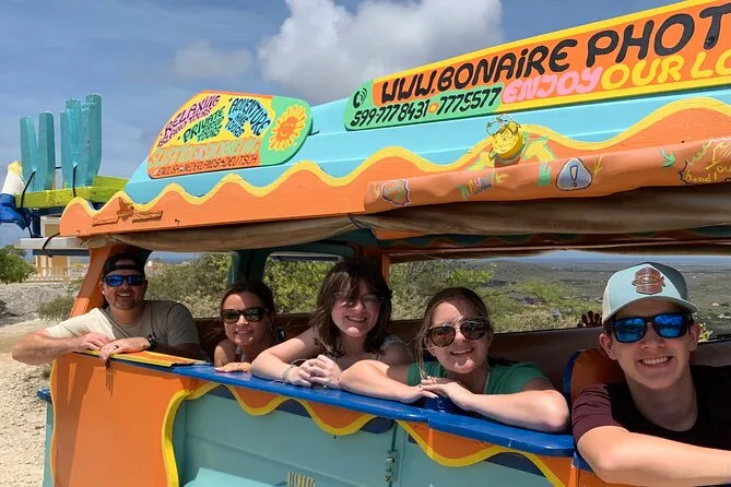 Partez en bus ouvert à travers les salines, flamants roses, spots de plongée et la côte sauvage de Bonaire
