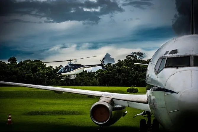 Votre expérience inclut un siège à bord d’un vol panoramique en hélicoptère au-dessus des chutes d’Iguazú depuis Foz do Iguaçu, avec un muffler optionnel pour atténuer le bruit si vous le souhaitez. Les vols sont flexibles—ils partent dès que le groupe est complet—et sont assurés par des pilotes locaux certifiés respectant des normes de sécurité strictes.
