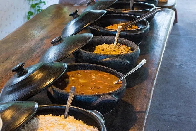 Il n’est pas précisé que le déjeuner est inclus ; la restauration est disponible sur place avec parrillada et plats bahianais.