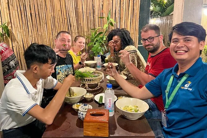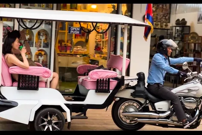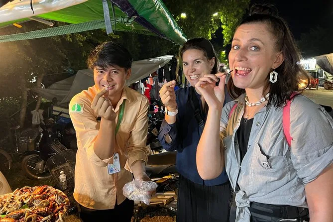 Partez en tuk-tuk dans les rues animées de Siem Reap avec un guide local, dégustez des nouilles sautées chez Lort Cha, une soupe au curry vert, et même des grillons frits au marché de nuit. Transfert hôtel inclus, petit groupe, saveurs authentiques et souvenirs inoubliables garantis.