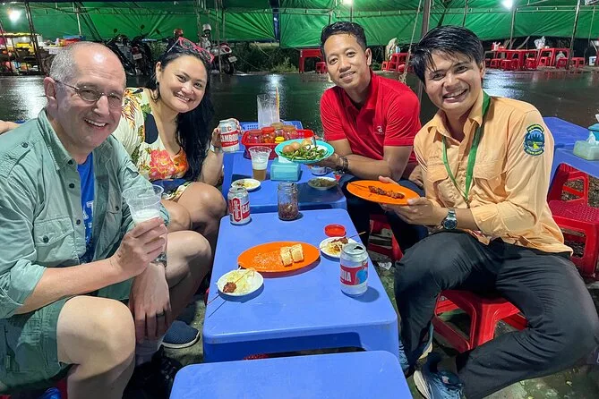 Votre soirée comprend la prise en charge et le retour en tuk-tuk depuis votre hôtel, tous les billets d’entrée aux marchés ou dégustations, de l’eau en bouteille pour rester hydraté entre les bouchées, chaque plat mentionné (et le dessert), une bière locale bien fraîche à la fin, et un guide anglophone qui veille à ce que personne ne se perde ou ne reste sur sa faim avant le retour vers 21h.