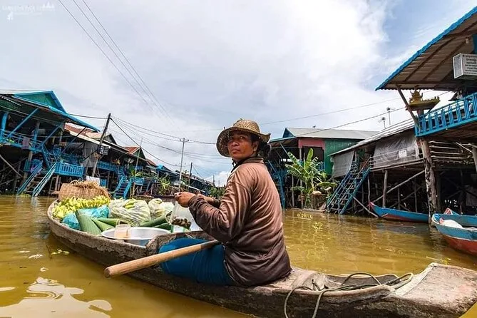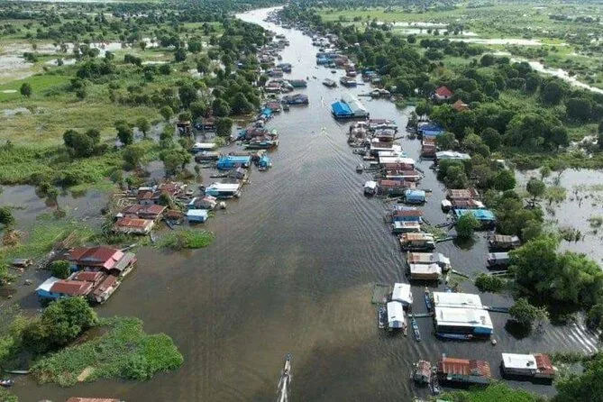 Votre journée comprend la prise en charge en véhicule climatisé depuis Siem Reap, tous les frais d’entrée et taxes payés à l’avance, beaucoup d’eau en bouteille, ainsi qu’une balade guidée en bateau à travers le village flottant de Kampong Khleang sur le lac Tonle Sap avant le retour.