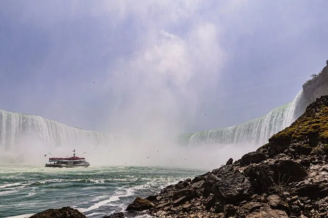 Votre journée comprend la rencontre avec votre guide local anglophone à la tour Skylon, avec les billets d’entrée déjà réservés ; des balades guidées vers des sites clés comme l’Illumination Tower et les Horseshoe Falls ; l’accès à la centrale Niagara Parks avec des activités pratiques ; des guides audio pour explorer à votre rythme ; et la descente en ascenseur vitré dans le tunnel Tailrace sous les chutes avant de finir au niveau de la rivière.