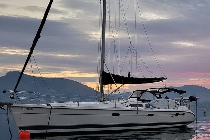 Vous naviguerez sur un grand voilier sur le lac Okanagan au départ de Penticton ou Naramata, en prenant la barre si vous le souhaitez ou simplement en vous relaxant pendant que les vignobles défilent. Baignade directe depuis le bateau ou paddle, avec un guide local qui partage anecdotes et conseils. Apportez vos snacks et boissons — tout le reste est prévu. Une expérience tranquille mais pleine de surprises.