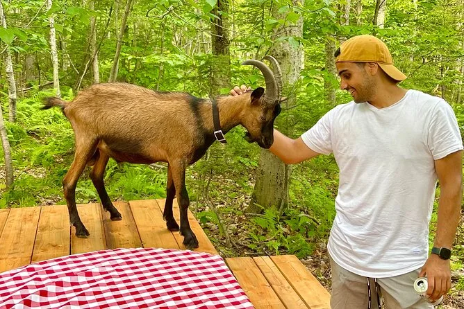 Partez en randonnée avec des chèvres dans les forêts paisibles du Québec, guidé par un local qui partage histoires d’animaux et astuces de piste. Faites une pause au vrai barrage de castors au bord du lac avant de savourer un pique-nique maison avec fromages, charcuterie, fruits frais, baguette et bière en plein air. Rires garantis (surtout quand les chèvres sont curieuses), bonne bouffe et moments de calme inattendus.