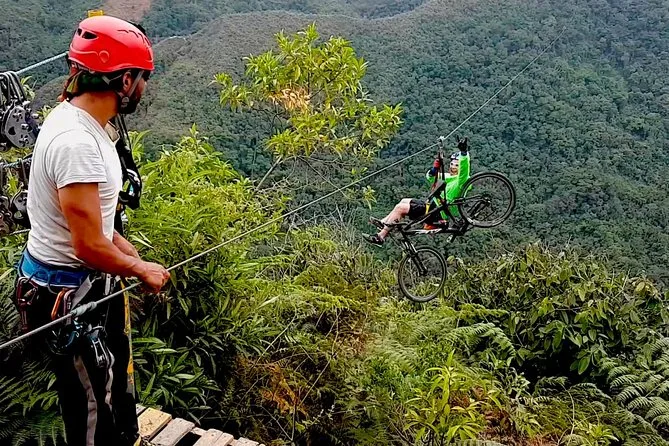 Vous survolerez la tyrolienne la plus haute de Colombie près de Medellín, traverserez des forêts de nuages pour vous tenir au pied d’une cascade de 100 mètres, et partagerez rires (et peut-être un repas) avec les locaux. Attendez-vous à des chaussures boueuses, des montées d’adrénaline, et une vraie connexion avec la nature — avec prise en charge à l’hôtel et guides pros pour assurer votre sécurité pendant que vous vous sentez courageux.