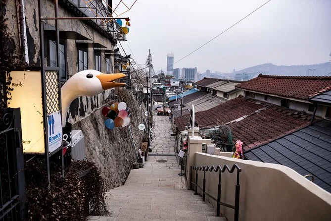 Parcourez les rues étudiantes animées de Séoul après la tombée de la nuit, grimpez jusqu’aux fresques des villages en pente que peu de touristes découvrent, et savourez la vue depuis le parc Naksan, au pied de l’ancienne muraille. Avec un historien local pour vous guider et partager des anecdotes inédites, attendez-vous à rire, à être surpris et à vivre un moment suspendu qui vous marquera longtemps.