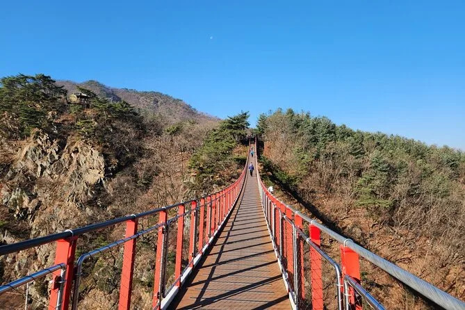 J’ai ajouté l’option du Pont Rouge à la fin (je n’ai pas pu résister). Traverser cette vallée profonde entourée par la montagne Gamaksan… mes jambes tremblaient plus que je ne voulais l’admettre. Mais honnêtement ? Cette vue me hante encore — des collines paisibles qui s’étendent derrière des barbelés, le soleil qui scintille sur la rivière en contrebas. Ce n’est pas juste une visite, c’est une expérience qui vous marque bien plus que prévu.