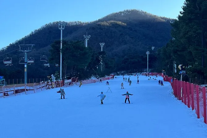 Votre journée comprend la prise en charge et le retour à l’hôtel ou à la station de métro principale à Séoul, toutes les taxes, la location du matériel de ski si vous choisissez cette option, un cours pour débutants avec un guide local expérimenté parlant anglais ou chinois, ainsi qu’un arrêt rapide dans un centre de ginseng avant de rentrer en soirée.