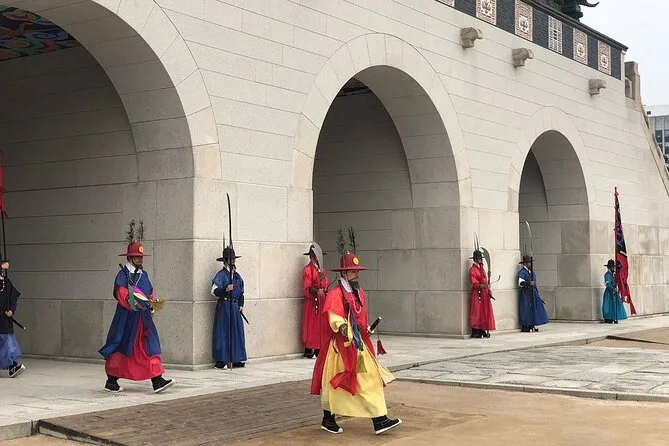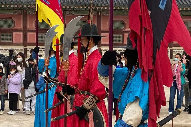 Je ne m’attendais pas à ce que la cérémonie des gardes au palais Gyeongbokgung soit si impressionnante — ces uniformes éclatants et le rythme régulier des tambours résonnant sur la pierre. Notre guide, Minji, nous a poussés un peu plus près pour qu’on puisse voir les visages des gardes (elle a dit que leurs moustaches sont en fait fausses — je n’aurais jamais deviné). L’air sentait encore un peu l’encens du temple Jogyesa, où nous étions passés plus tôt ce matin-là, accroché à ma veste. Je n’arrêtais pas de penser à la façon dont Séoul arrive à être à la fois paisible et bouillonnante.