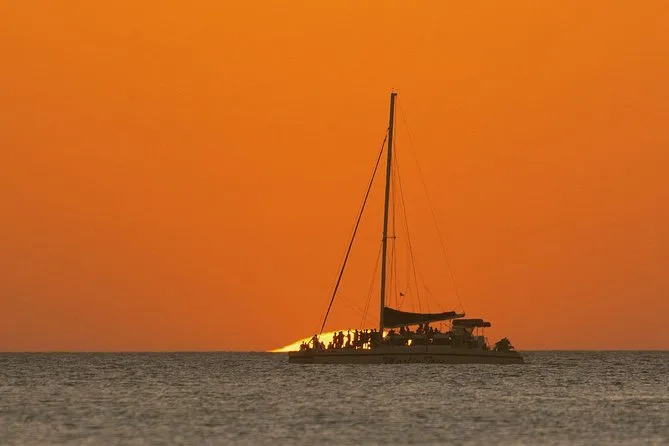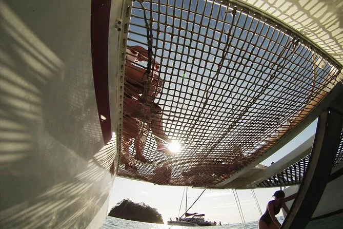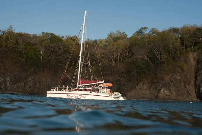 Profitez de quatre heures et demie à bord d’un grand catamaran au départ de la plage de Playas del Coco avec tout le matériel de snorkeling fourni (selon météo), un bar ouvert à volonté avec bières, vins, spiritueux ainsi que sodas et jus. Le déjeuner est servi à bord : poulet BBQ accompagné de riz jaune, haricots noirs, fruits frais et biscuits maison, avant le retour sous un ciel coloré au coucher du soleil.