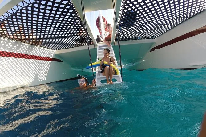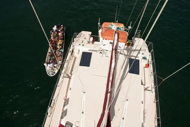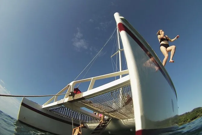 Embarquez sur un grand catamaran à Playas del Coco pour un après-midi de snorkeling dans les eaux chaudes du Pacifique, un déjeuner BBQ convivial et des boissons à volonté, tout en glissant le long de la côte du Costa Rica. Nagez ou laissez-vous flotter dans une baie paisible avant de rentrer sous un ciel de coucher de soleil — un moment simple, authentique, et rempli de cette joie salée.