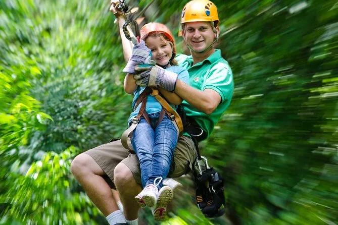 Sensations fortes en eaux vives et tyroliennes dans les arbres près de La Fortuna avec déjeuner local