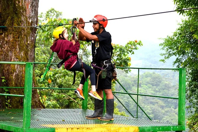 Votre journée comprend le transfert hôtel aller-retour à La Fortuna, tout le matériel de sécurité pour le rafting sur la rivière Balsa et les neuf tyroliennes encadrées par des guides professionnels. Entre les activités, profitez d’un déjeuner bio casado costaricien avec café frais, ainsi qu’une visite de ferme avec démonstration de canne à sucre avant de retourner à votre hôtel.