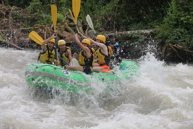 Le rafting sur la rivière Balsa, c’est bruyant — pas seulement à cause de l’eau, mais aussi de nos cris pour se coordonner. L’eau est plus froide qu’on ne l’imagine sous cette épaisse canopée verte, et après chaque éclaboussure, une odeur de terre humide flotte dans l’air. À un moment, j’ai perdu ma pagaie (pas de panique, ils l’ont récupérée), et Andrea a juste souri en disant que ça arrive à tout le monde lors de leur première sortie rafting au Costa Rica. Des oiseaux volaient au-dessus — des éclats de bleu vif — mais honnêtement, j’étais trop concentré à ne pas tomber à l’eau.
