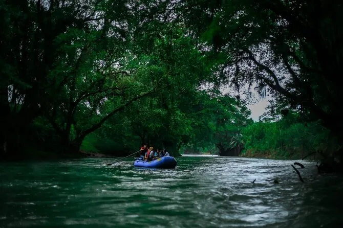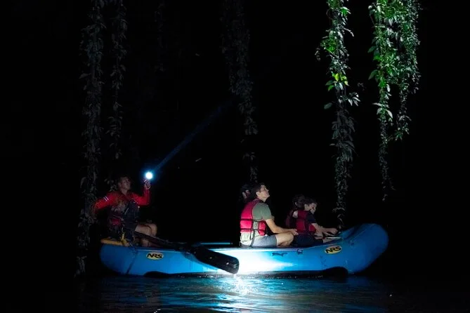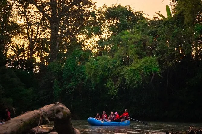 Votre soirée inclut la prise en charge en véhicule climatisé depuis La Fortuna, tout l’équipement comme les gilets de sauvetage et votre place sur le radeau gérés par le guide, des en-cas accompagnés de café ou thé chaud servis en pleine rivière, ainsi que du temps pour vous détendre pendant que votre naturaliste local rame et vous aide à observer la faune avant de revenir après la tombée de la nuit.