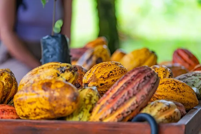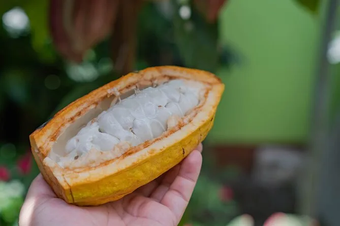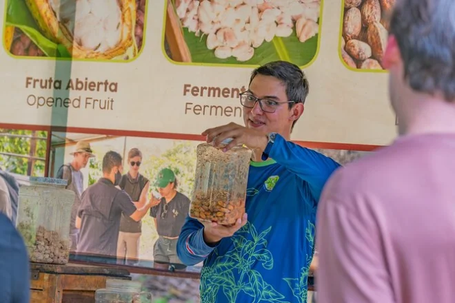 Vous dégusterez des cerises de café fraîches, de la pulpe de cacao, du chocolat préparé, du jus de canne à sucre et du café infusé.