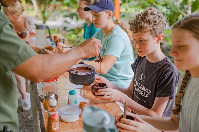 Parcourez une ferme familiale en activité près de La Fortuna, goûtez les cerises de café et le cacao frais directement sur l’arbre, puis découvrez comment les locaux les transforment en boissons et douceurs riches. Essayez de presser la canne à sucre, partagez des rires avec votre guide autour de nouveaux mots, et savourez des saveurs maison sous le ciel costaricien.