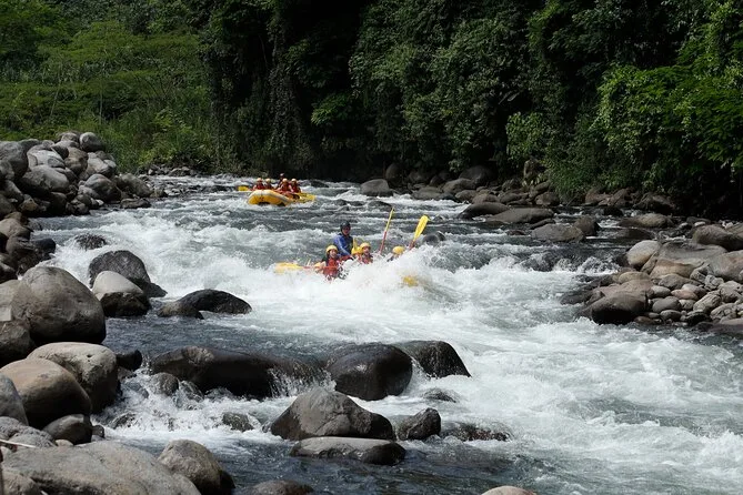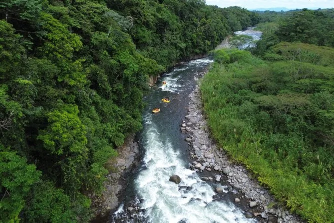 Votre journée comprend la prise en charge à l’hôtel si vous êtes à moins de 6 km du bureau principal (l’heure vous sera confirmée), tout l’équipement de sécurité comme casque et gilet de sauvetage, ainsi que les consignes données par des guides professionnels bilingues avant de partir sur la rivière. Des fruits frais vous seront servis à bord en pleine descente (les doigts collants font partie du jeu), des serviettes vous attendront à la fin, ainsi que de l’eau en bouteille, et enfin un déjeuner casado costaricien complet avant de retourner à la vie normale.
